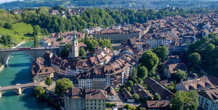 Bern, die Hauptstadt der Schweiz, wurde auf einer Halbinsel erbaut, die vom Fluss Aare umgeben ist. Die Ursprünge der Stadt gehen auf das 12. Jahrhundert zurück, wobei die mittelalterliche Architektur in der Altstadt erhalten geblieben ist. Die Bundesversammlung und Diplomaten treffen sich im Bundeshaus, einem Gebäude im Neo-Renaissance-Stil. Die Französische Kirche und der mittelalterliche Zytglogge-Turm stammen beide aus dem 13.